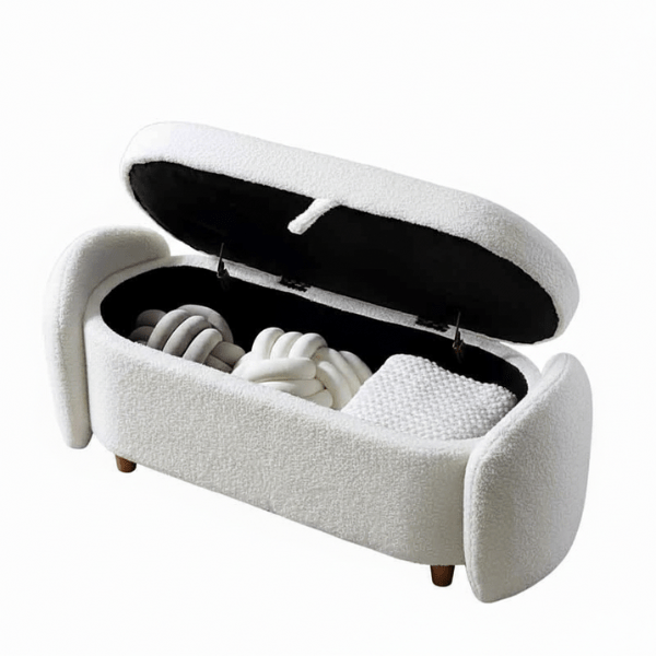 Fabric: Upholstered in premium Bouclé, known for its rich, tactile texture that adds a cozy and elegant feel to any room.