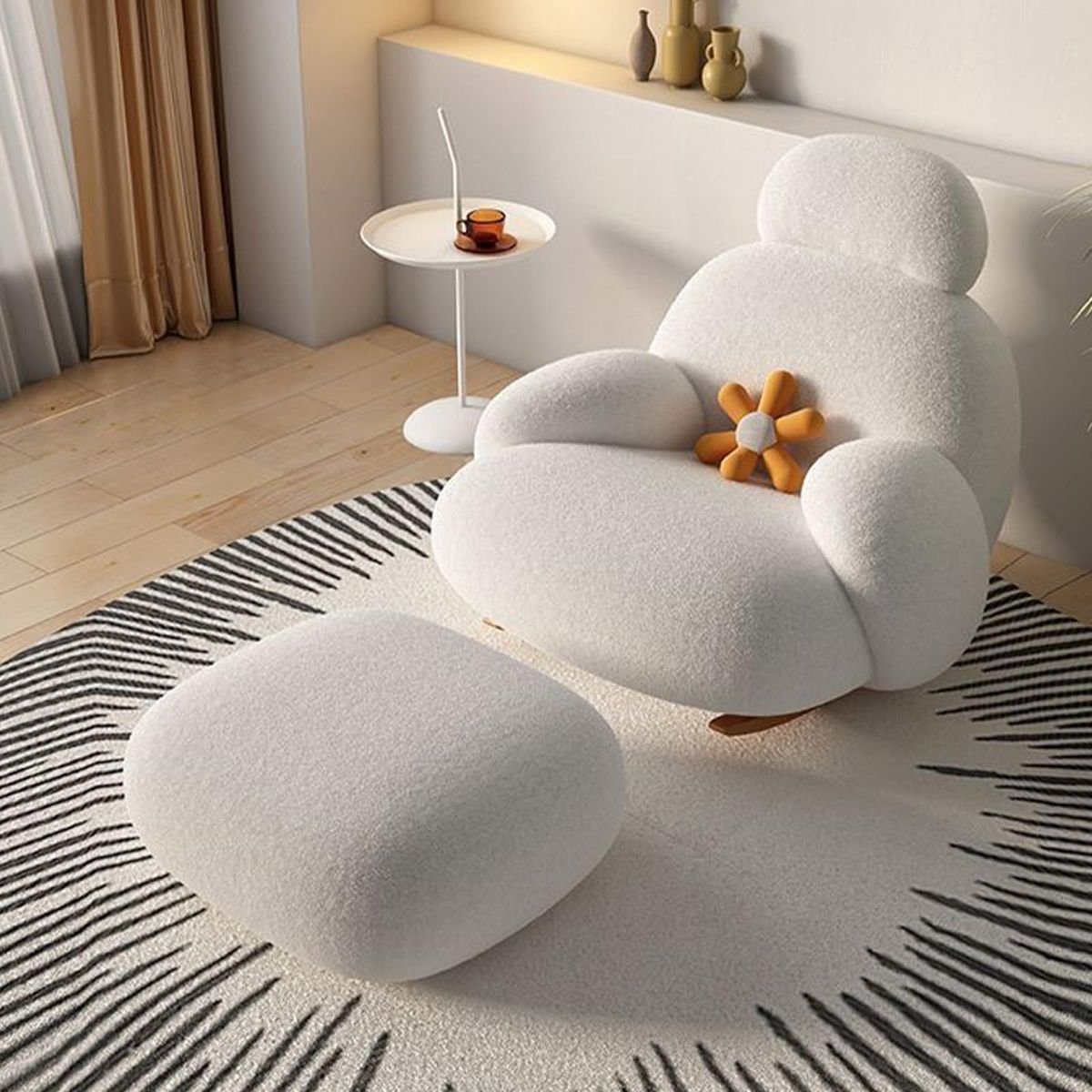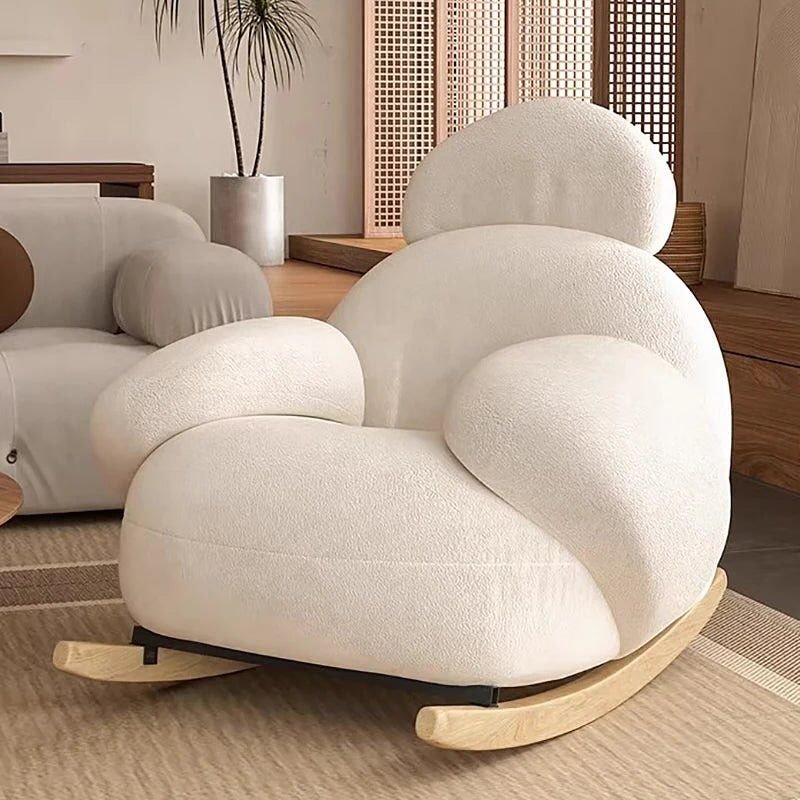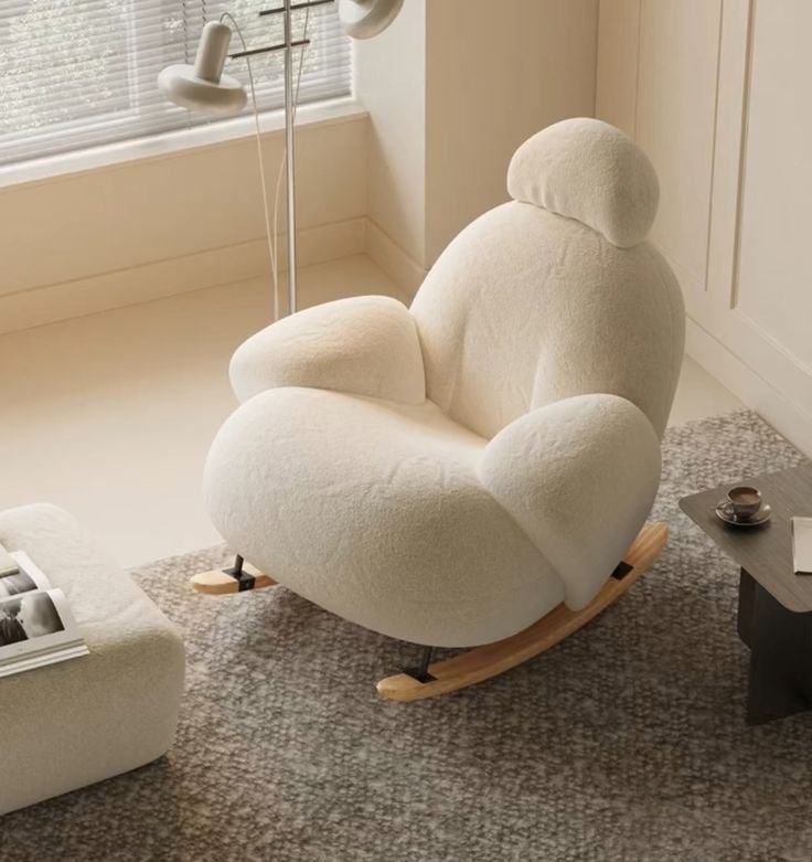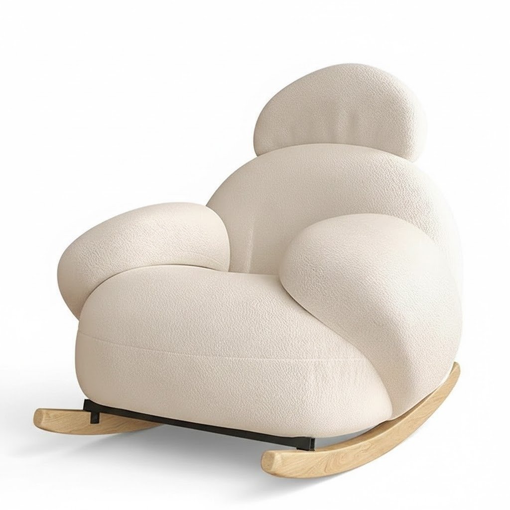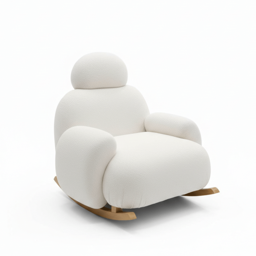 The Pochi Rocking Chair is a modern, cloud-like lounge chair designed for ultimate relaxation. Featuring a smooth rocking function, it provides gentle motion to help you unwind. With its plush cushioning and contemporary aesthetic, this chair is perfect for living rooms, bedrooms, or cozy lounge spaces. Available in elegant white and light blue, the Pochi Rocking Chair blends comfort and style effortlessly.