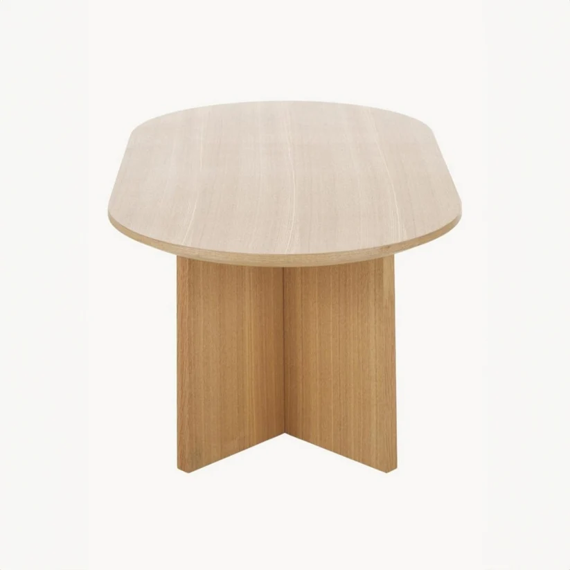 - Enjoy a unique seating experience with this elegant wooden coffee table featuring two easily retractable nesting poufs. When arranged together, they create a sleek, modern look, and when separated, they transform into practical and stylish additional seating.