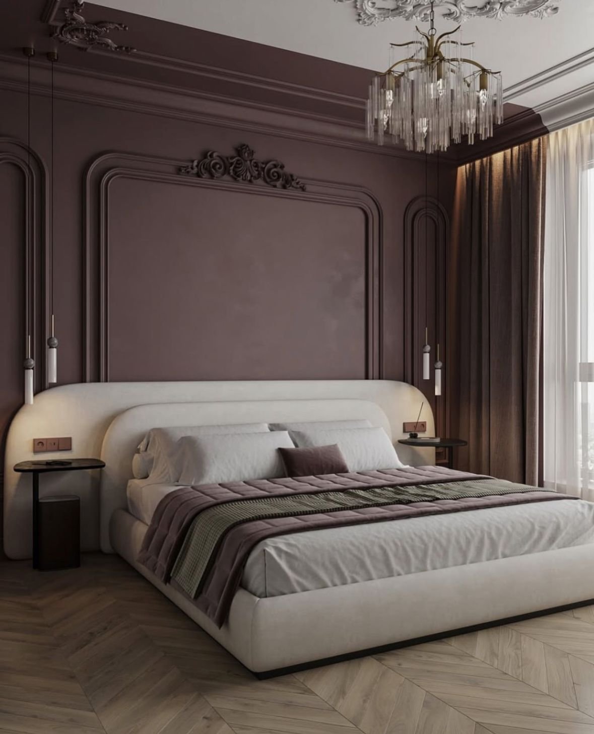 Extended Wingback Headboard: Features a unique design that extends on both sides behind the bedside tables, creating an integrated wall backdrop that gives the room a luxurious hotel feel.