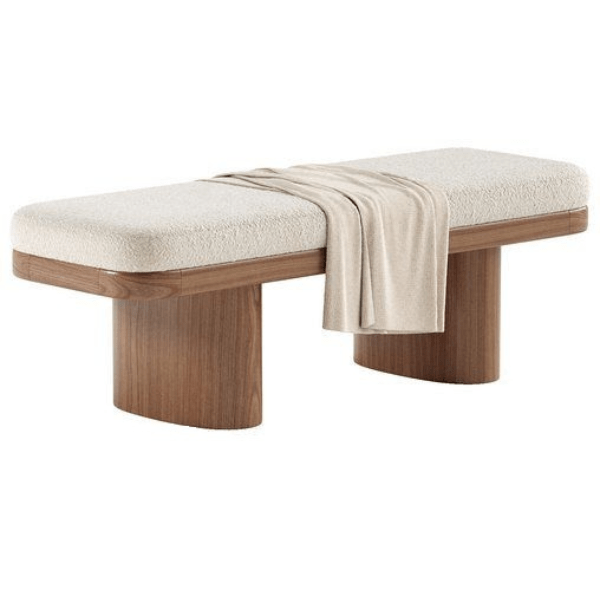 Ollie Bench – Crafted with a solid wood frame, often rubberwood or acacia, and upholstered in soft boucle fabric, this bench combines durability with comfort. Available in elegant white or cream, it features rounded wooden legs and a smooth, cushioned top with an oval or rectangular base. Perfect for entryways, at the foot of the bed, or as an additional seating piece in any room, Ollie Bench adds both style and functionality to your home.
