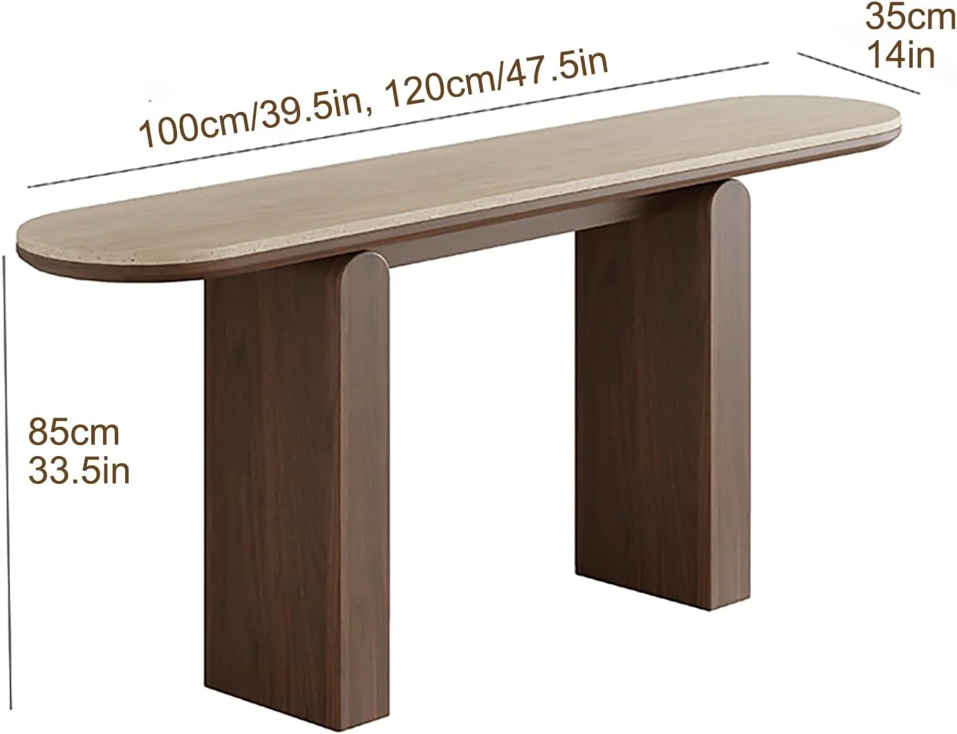 - Crafted with a luxurious travertine top and an engineered wood frame, this console table offers a perfect blend of natural charm and modern design. The smooth joinery and rounded edges create a refined, cohesive look, while the contrasting textures of travertine and wood grain add depth and character to any entryway.