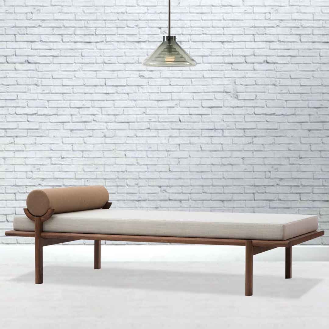 Design & Aesthetic: A minimalist modern design featuring a clean, elegant frame and a distinctive crescent-shaped headrest that adds character and sophistication to the piece.